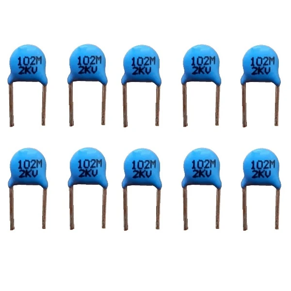 خازن 1 نانوفاراد 2 کیلو ولت مدل disc 102M 2Kv بسته 10 عددی