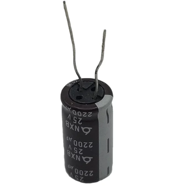 ظرفیت: ۲۲۰۰ میکروفاراد ولتاژ: ۲۵ ولت نوع: الکترولیت دما: ۱۰۵ درجه سانتی گراد برند: خازن اورجینال NXB