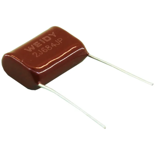 دی الکتریک بکاررفته در این خازن ها از جنس پلی استر (polyethylene terephthalate) می باشد. از امتیازات این خازن ها که به دلیل جنس دی الکتریکشان می باشد تحمل دماهای بالا (اکثرا تا 125درجه سانتی گراد) است. به عبارت دیگر این خازن ها پایداری نسبتا خوبی در برابر تغییرات دما از خود نشان می دهند. ساختار و جنس دی الکتریک این دسته از خازن ها، کاربرد آنها را در مدارهایی با RISE TIME سریع امکانپذیر می سازد. این محصول خازن پلی استر با ظرفیت 680 نانو فاراد و ولتاژ 630 ولت است که در بسته های 200 عددی ارایه میگردد.