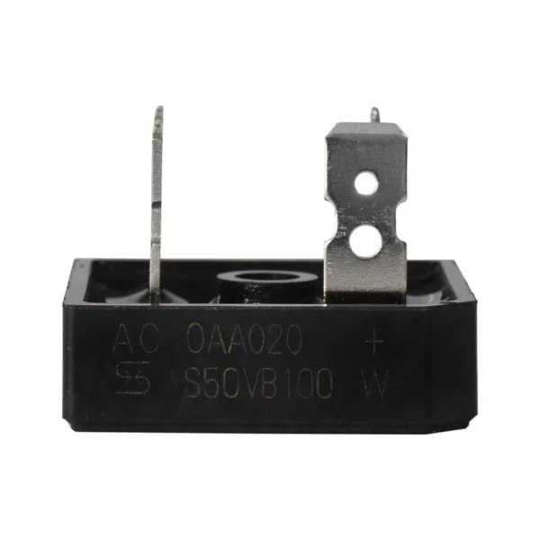 پل دیود تک فاز جریان IF : مقدار ۵۰ آمپر ولتاژ پیک معکوس: ۱۰۰۰ ولت ولتاژ Vf : مقدار ۱.۱ ولت حداکثر جریان لحظه ای Surge : مقدار ۴۰۰ آمپر محدوده کارکرد دمایی: ۵۵- تا ۱۵۰+ درجه سانتیگراد پکیج : KBPC-W